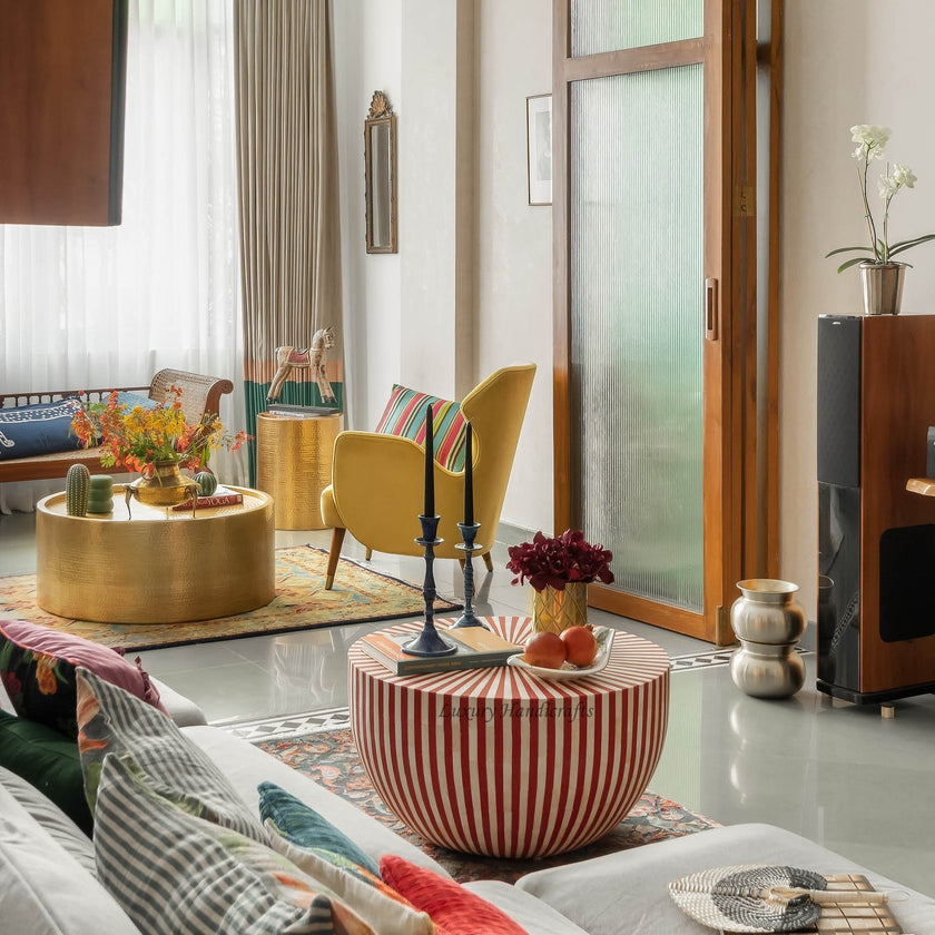 Celebrate the grandeur of thikri glass inlay furniture, a rare craft where hand-cut mirror pieces are embedded into wooden surfaces. The result is a dazzling, light-reflecting piece that elevates your modern designer furniture collections. And yes, this touch of a natural element ensures that every piece of furniture is unique in its own right.