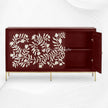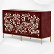 Unsere Toria Bone Inlay Credenza ist ein echter Hingucker und ein Highlight unserer neuen Bone Inlay Kollektion – und der Grund dafür ist leicht zu erkennen. In einem satten Grünton, mit zartem Blumenmuster und Metallbeinen ist Toria ein echter Hingucker.
