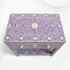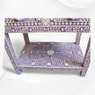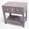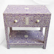 This bedside stands out for its hand-cut bone tiles, refined lavender tone, and precise craftsmanship, offering beauty, durability, and modern utility for everyday bedroom use.
