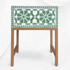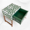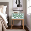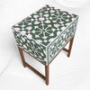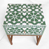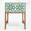 This bedside stands out for its handcrafted Moroccan floral design, green base, and premium bone inlay detailing, giving your room an artistic vintage appeal.