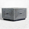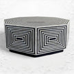 Our handcrafted table with octagonal shape melds the ornate detail of bone inlay with the minimalist aesthetic of modern furniture.