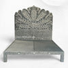 Peacock Mother of Pearl Inlay Bed Dark Grey