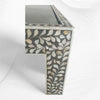 Bone inlay has a natural, earthy look with a matte finish, while Mother of Pearl inlay looks shiny and elegant with its iridescent glow. Both materials can be used for various patterns and can be applied to any furniture or homeware items in our online store.