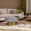 A side of style to elevate your décor. Our designer targua design mop inlay side table in black and white. This doubles up as an end table or a stool.